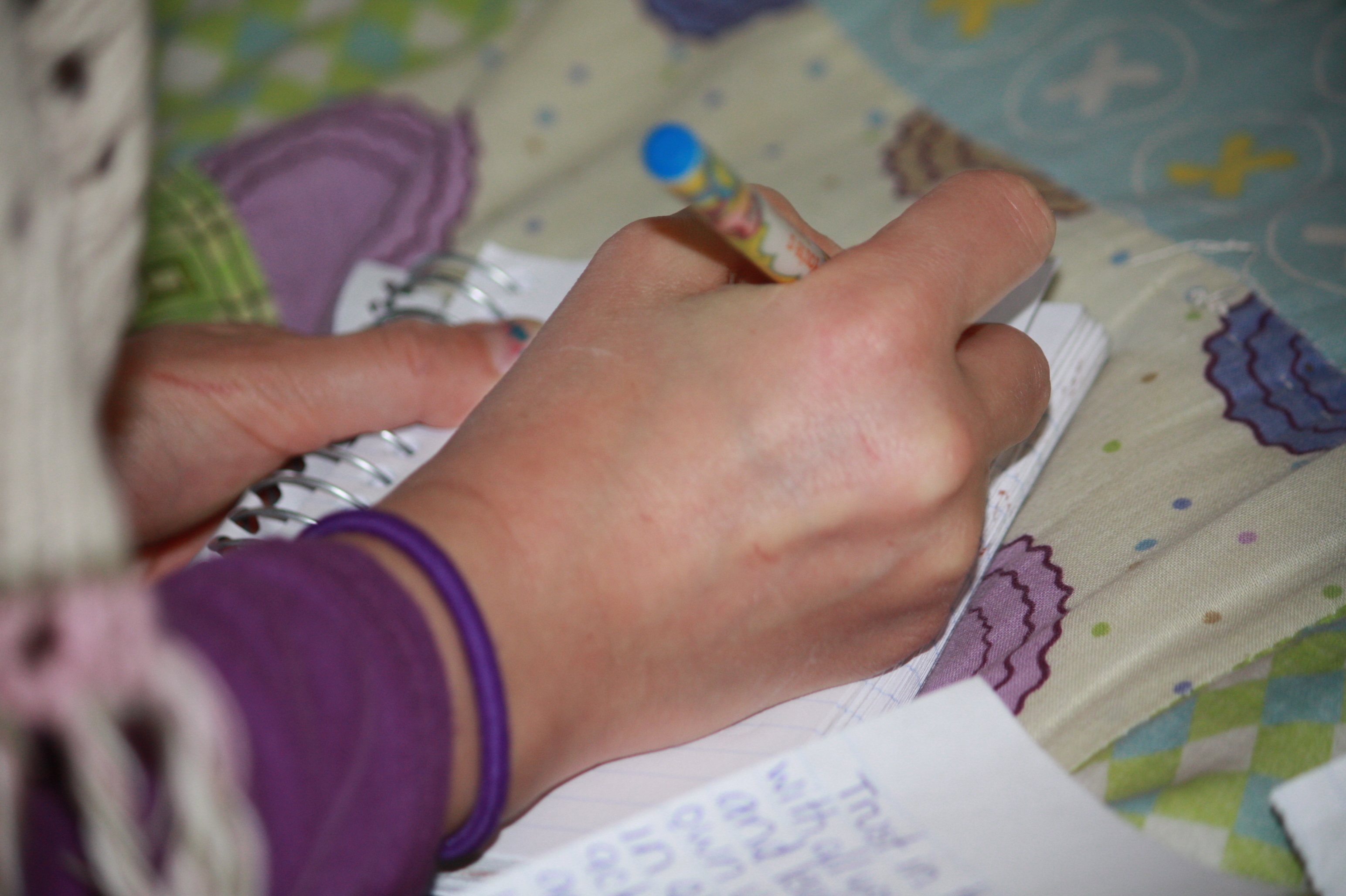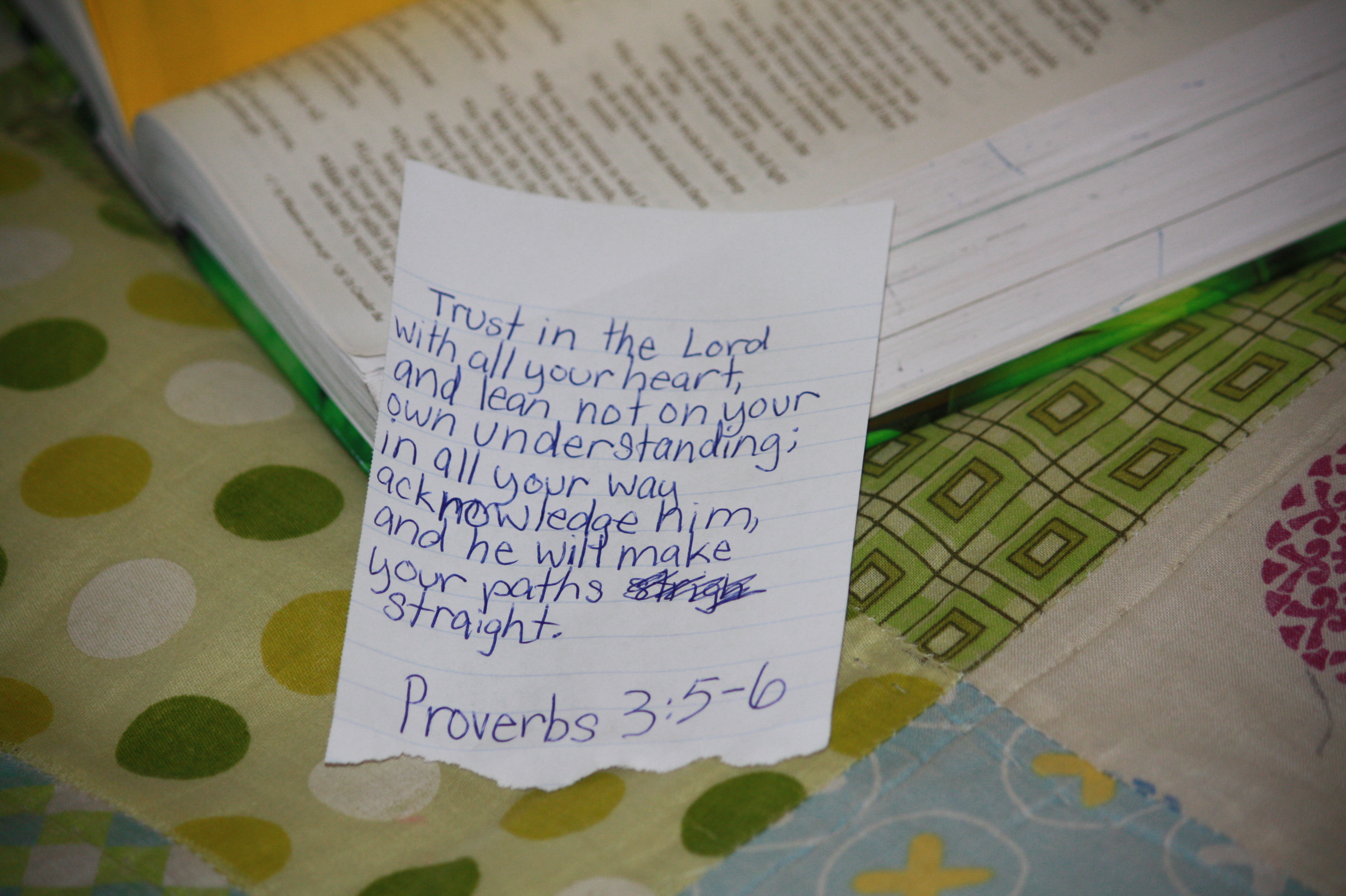 I found her in her room copying Bible verses.